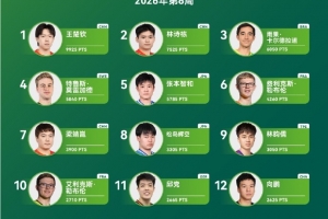 乒联2026年第6周世界排名:王楚钦林诗栋男单前二 孙颖莎女单第一