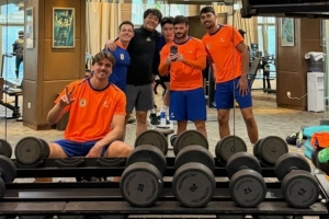 体育资讯1月23日讯 今日,泰山队外援卡扎伊什维利更新社媒,晒出和队友一同在健身房训练的照片。克雷桑在评论区搞怪评论“喵”。