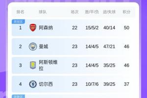 最新英超积分榜: