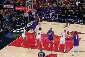 下一篇: 这速度和距离!詹姆斯远距离起飞单臂滑翔劈扣!半场20分赛季新高