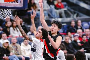 GIF-杨瀚森跟朱哥挡拆配合!杨瀚森勾手两分!