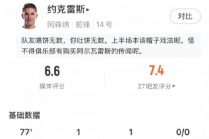 体育资讯1月29日讯 欧冠联赛阶段第8轮,阿森纳主场对阵阿拉木图凯拉特,约克雷斯代表阿森纳首发出战,在第77分钟被替换下场,球员本场数据如下: