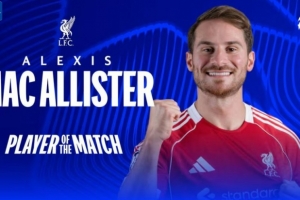 本场比赛麦卡利斯特梅开二度,赛后当选欧冠官方评选出的本场最佳球员。